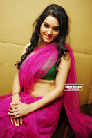 Kavya Singh hot cleavage in pink saree and green blouse
