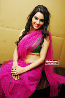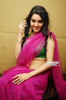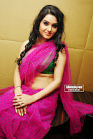 Kavya Singh hot cleavage in pink saree and green blouse